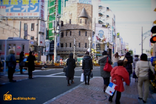 「聞く写真」のつくりかたは、とても簡単です。まず、まちを歩きながら、気になったところでしばし立ち止まり、まわりの様子をジロジロと(怪しまれない程度に)観察しながら、3分ほどの「まちの音」を採集します。この3分間が、意外と長く感じられたりします。そして、写真を数枚。これを、いろいろな場所でくり返してゆきます。今回は、「フィールドワーク展III」にあわせて、自由が丘の「聞く写真」をつくってみました。