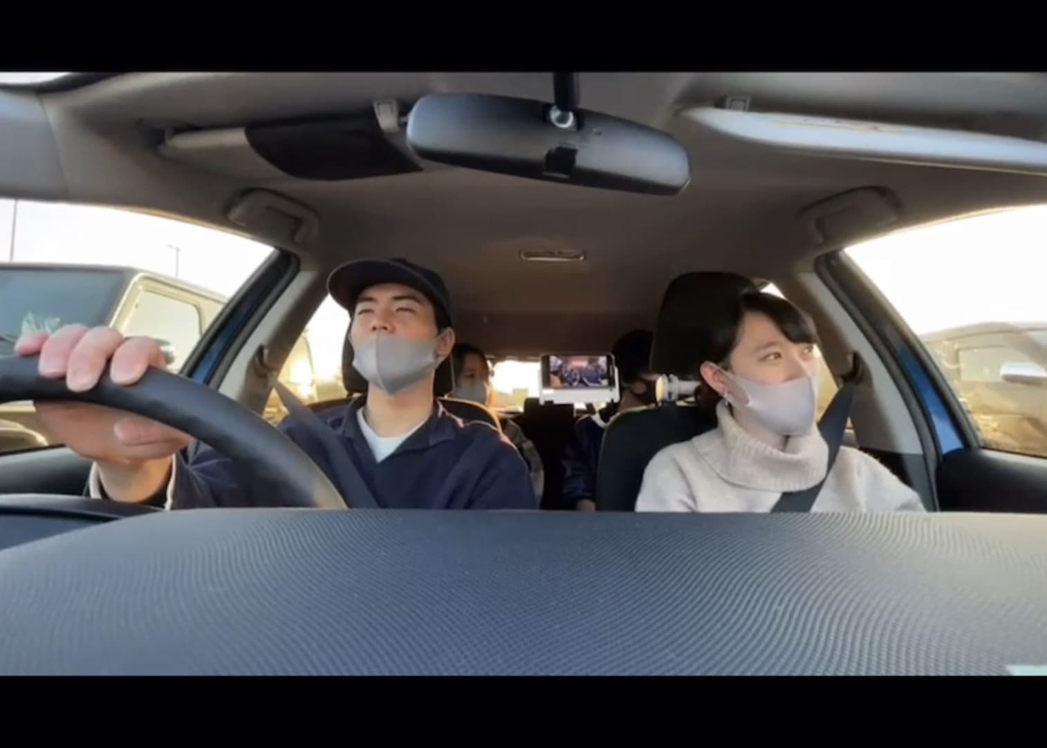 改めて考えると車内というシチュエーションは非常にぎこちない。誰かと長時間、密室空間にいることを強制され、かつ座席に座る位置によって役割が発生する。一般的にドライブは仲良くなる手段の一つとして使われることがしばしばある。一方でドライブがぎこちない空間であるということもまた認識されている。普段私たちは何気なくドライブに誘ったり誘われたりするが、仲良くなるためにあえてぎこちない状況を選んでいるということを考えると非常に興味深い。