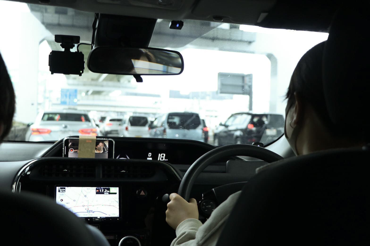 初回のドライブは、横浜を出発地とし目的地を高尾山に定めた。私たちは、車内の様子をスマートフォンのカメラで録画し続け、その映像を後から定量的・定性的に振り返ることにした。振り返りでは、それぞれがメンバーの一人に着目して、窓の外を見た回数、沈黙の長さなどの記録を行った。それに併せて、ドライブ中の印象的な出来事や、映像を見返す中で気になったことなども書き出した。その後、オンラインで集まり、四人で映像を見返しながら振り返りの共有、ぎこちない距離の考察を行った。しかし、ドライブ中のぎこちない瞬間を発見することはできたものの、何がそのぎこちなさを生み出す要因となっていたのかが捉え切れなかった。