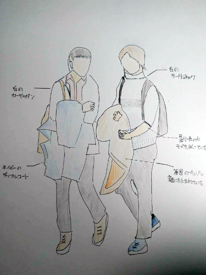 二日間、ホールA・Bの出口(入口)をフィールドに、帰路に就く人々を観察した。展示会場に入ると、来場客は名前を書き「GUEST」の名札とパンフレットが入った手提げ袋を配布される。会場の中でも各展示によって配布してくれる資料があり、それだんだんとたまっていくそれを、彼らは都合よく手に入れていた袋に入れていくのだった。会場全体は人によってさまざまだが、大抵20~1時間弱で周る人が多い。出口の前で人々を観察していると、来た時よりも膨らんだ手提げ袋を提げている人が多かった。各研究会によって作られた思い思いの研究成果や報告は、彼らの目にどう映ったのだろう。一人の女子が持つ袋から、「つながるカレー」が透けて見えた。来た時に渡されたはずの袋を手にさげない人も多かった。彼らはきっと自分のリュックサックやカバンに入れ、展示を回りやすくするため、帰りみち歩きやすくするための工夫を凝らしていたのだろう。