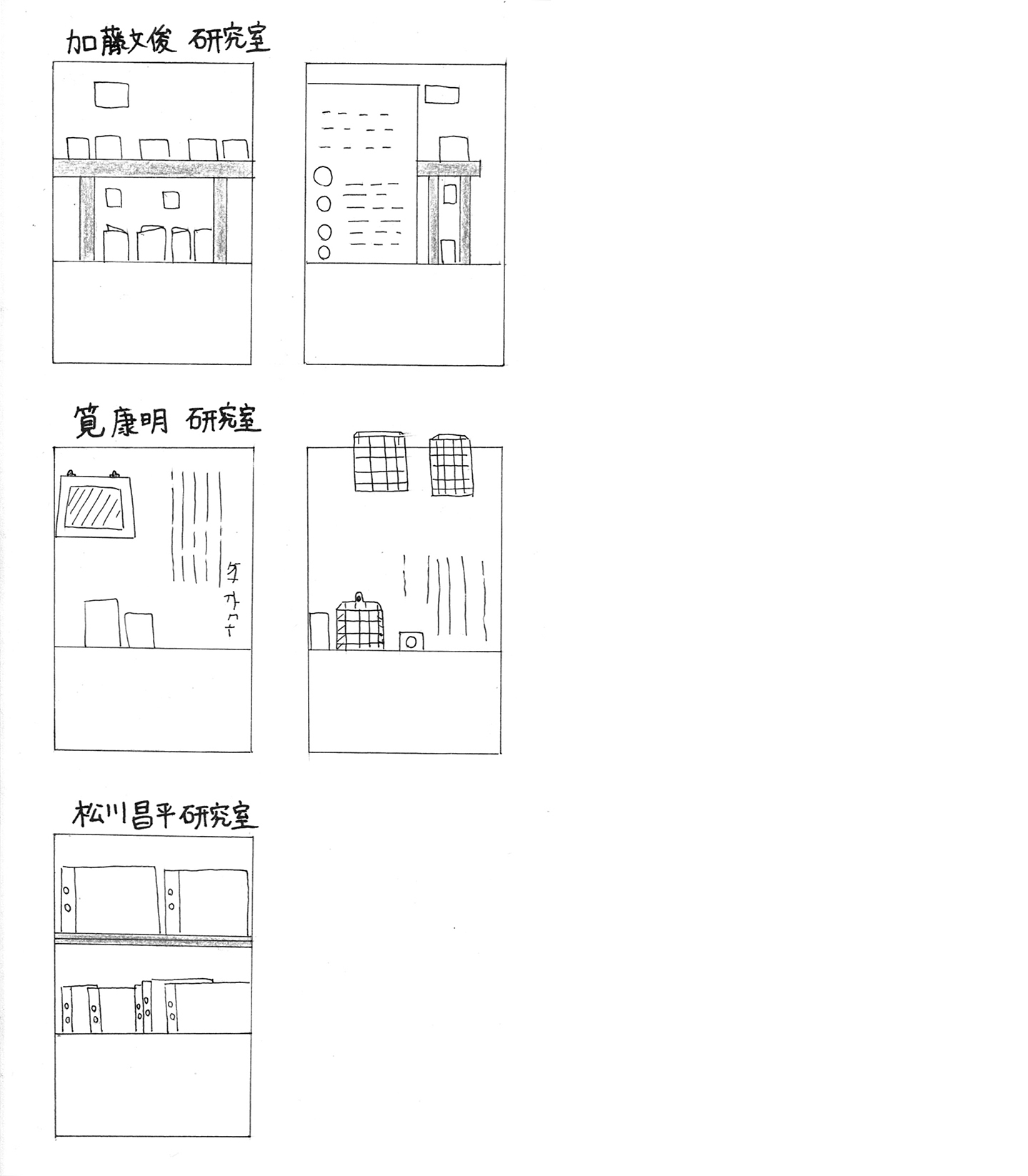 なぜイーゼルたちはこのように改造されてしまったのか。それは、作品に対する適切な展示方法であると考える。前提として、今回の6つの研究室はほとんどが「xD」と呼ばれるSFCのデザイン系の研究室である。つまり、アウトプットの制作が研究のなかで要求される。冊子、本、立体物、ポートフォリオ、映像(デイスプレイ)など、形はさまざまである。けれどもこれらを展示しようとしたとき、イーゼルの平面では不十分であった。だから、物を置くための板が多様な姿で新たに付け加えられた。逆に言えば、展示空間を新たに拡大させることで、展示できるアウトプットも増えるという関係がある。